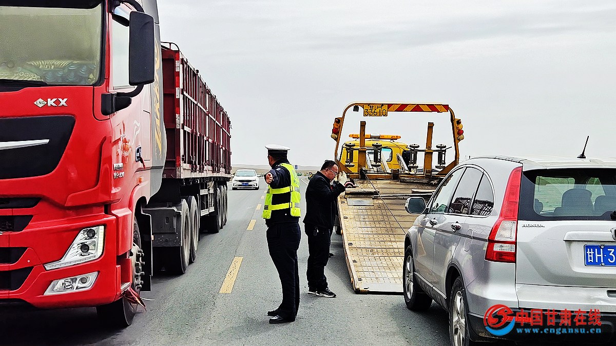 中国甘肃在线天祝讯 2024年4月26日上午10时许,武威市天祝县公安局松山派出所民警在辖区开展道路巡逻勤务。巡逻至国道338线下行1900公里加600米处时,发现对向车道停靠着一辆小型普通客车车头部位冒白烟疑似发生故障无法正常行驶。因该路段车流量较大,为确保道路通行安全,避免引发交通事故,民警当即下车查看并将车内驾乘人员引导至安全地带等待救援。