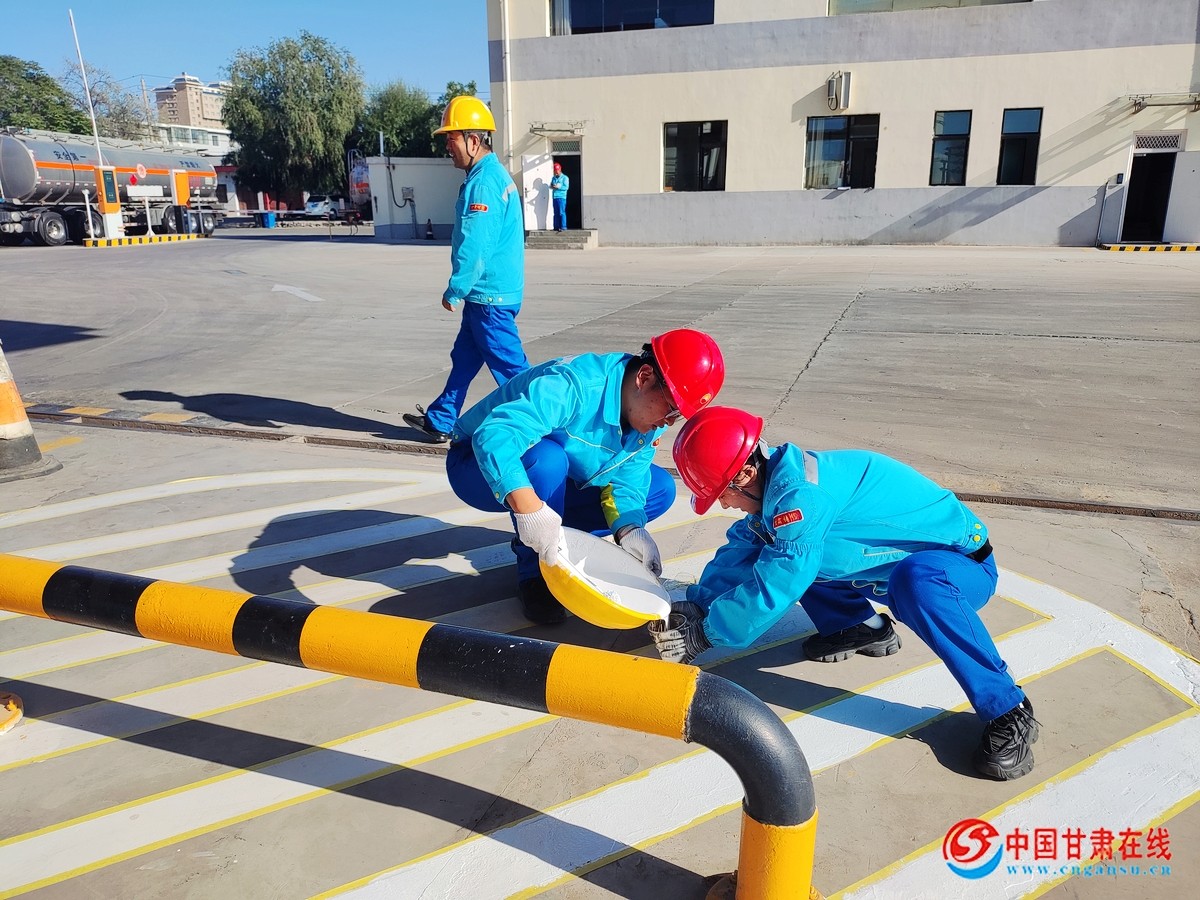 中国甘肃在线武威讯 随着业务高峰的到来,武威油库发油区罐车频繁进出,导致地标线出现磨损,影响了日常作业的规范性。为提升库区整体环境,确保作业安全,武威油库迅速组织员工开展了一场“焕新行动”,对发油区地标线进行集中粉刷修复。