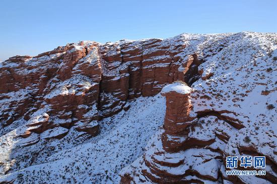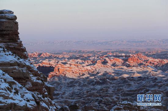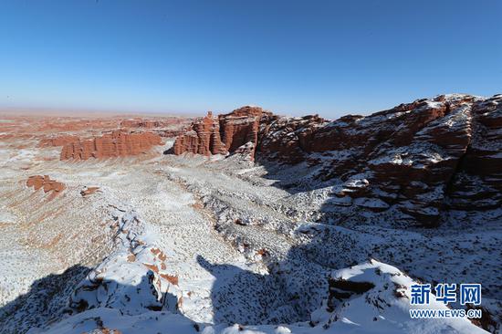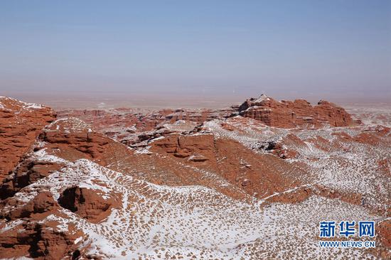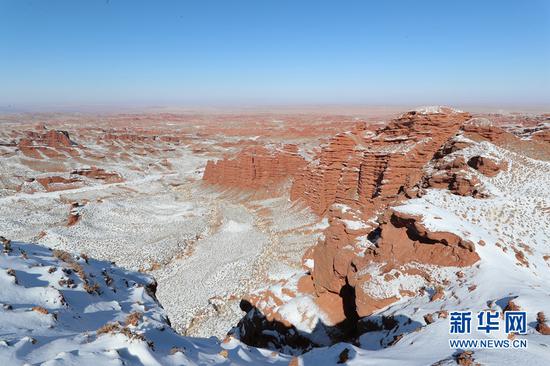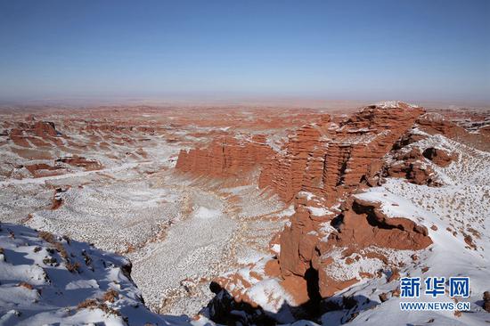 2月21日,甘肃张掖平山湖大峡谷雪后初霁,峡谷峰峦起伏、银装素裹,红色的崖壁在茫茫白雪中分外艳丽,宛若画卷,美不胜收。新华网发 成林 摄(来源:新华网)