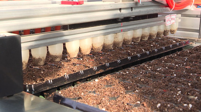 “要是人工点播的话,一个棚8个人得干两天,机器一天就完成了,而且种子点得均匀。”公司技术员王爱说。