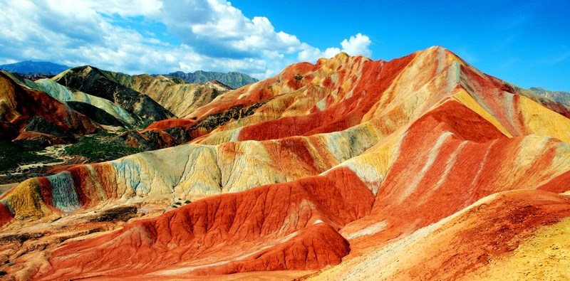 张掖古称甘州,西汉以“张国臂掖,以通西域”而得名,位于青藏高原和蒙古高原交汇的河西走廊中部,自古以来就是丝绸之路商贾重镇和咽喉要道,素有“塞上江南”“金张掖”之美誉。张掖地质公园总面积1289.71平方公里,由彩色丘陵、冰沟丹霞、中华裕固风情走廊3个景区和九个泉地质科考区组成。公园内地貌景观独特,地质遗迹丰富,具有极高的观赏价值和科研价值。境内雪山冰川、森林草原、田畴沃野、彩色丘陵、丹霞地貌等地貌交相辉映,堪称地貌景观大观园。有彩色丘陵、冰沟丹霞等世界地学奇观、九个泉蛇绿岩套等珍贵的地质遗迹和裕固族独特的民族风情,榆木山岩画、二齿兽化石、冰沟硅化木等历史文化遗存丰富多彩。曾先后荣获“世界十大神奇地理奇观”“全球最刻骨铭心的二十二处风景之一”和“全球二十五处梦幻旅行地之一”“三十个中国最美的地方之一”“中国最美外景地”等殊荣。2008年被省政府命名为省级地质公园、省级风景名胜区,2012年4月获得国家地质公园建设资格,2015年9月通过原国土资源部检查验收并批准命名。2014年冰沟丹霞景区和中华裕固风情走廊景区被评定为国家4A级旅游景区,2019年彩色丘陵景区评定为国家5A级旅游景区。