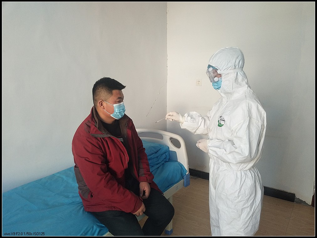 近日,临泽县蓼泉中心卫生院为全面贯彻落实新冠肺炎疫情防控要求,积极组织全院职工开展了应急演练。图1示:模拟患者进入医院门诊门口,在预检分诊处要求就医,额温枪测体温38℃,扫描个人电子健康识别码为“黄码”,作登记,预检分诊人员打电话至传染病防控人员,传染病防控人员打电话通知二线预检分诊值班人员接班,通知消杀组人员到预检分诊处进行消杀,通知发热门诊值班医生准备接诊,同时电话上报院办室并上报县卫健局、县疾控中心,通知县医院发热门诊接诊。图2、3示:消杀组人员到位,模拟患者由预检分诊人员将患者由隔离通道带入临时隔离间暂时安置,同时消杀组人员跟随消杀(包括:预检分诊处、通道地面、空气及周边)。消杀后,代班预检分诊人员就位。图4、5示:模拟患者到隔离安置点后由核酸检测小组进行咽拭子采样,体温检测,并安排即可送检,由医疗救治组医师对患者再次询问旅居史、叮嘱患者积极配合检查及隔离观察等。