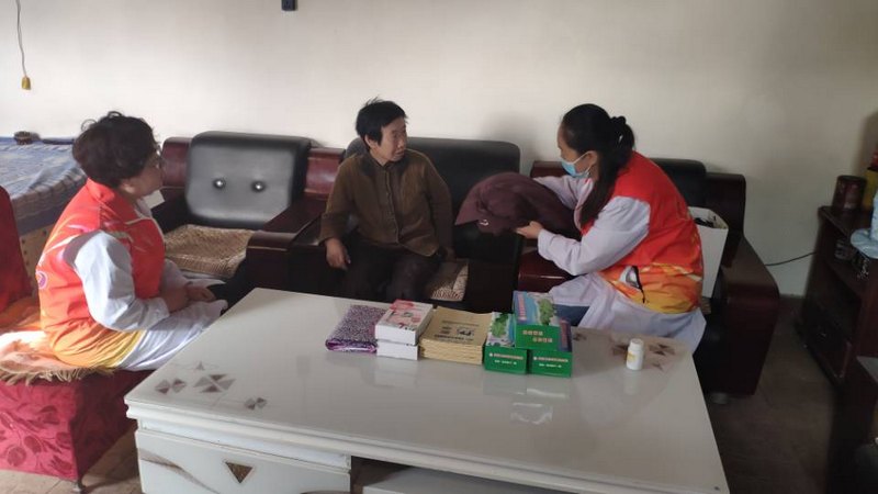 在建档立卡贫困户家中,服务队员为老人们送上衣物,为孩子们送上书本,并向老人们宣讲新冠疫情防控知识和春季常见病预防保健知识,嘱咐他们勤洗手,出门戴口罩,室内常通风,不到人群聚集的地方去,有病及时就医。