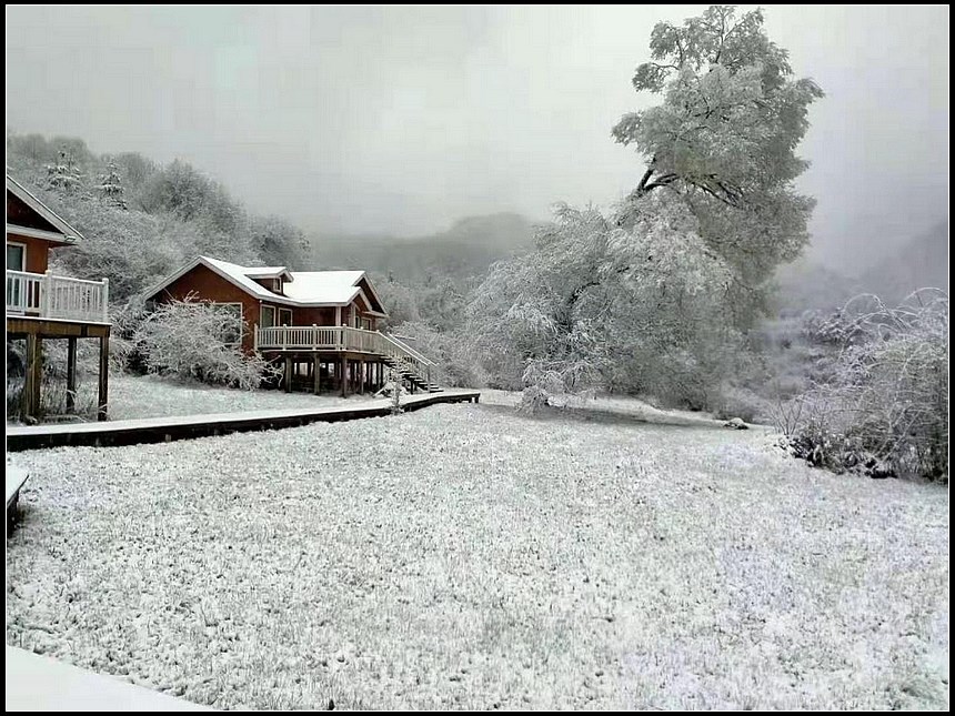 2021年4月1日甘肃省两当县云屏乡落下第一场春雪,云屏三峡4A景区内银装素裹,美不胜收。