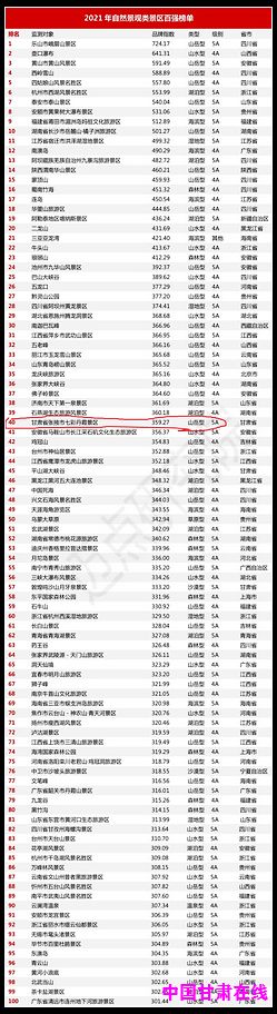 中国甘肃在线张掖讯 近日,迈点研究院在《2022年自然景观类景区品牌发展报告》中发布了2021年自然景观类景区品牌指数百强榜单,张掖七彩丹霞景区上榜,位列百强榜第40位,品牌指数35.97。