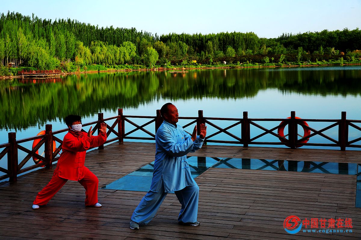 中国甘肃在线甘州讯(记者 马岳荣)清晨,在一片片林荫下,伴随着悠扬柔和的音乐,身着白色服装的太极拳爱好者从容打着拳;下午,滨河新区湖畔的健身步道上,人们或快或慢,边欣赏着湖畔风景边健身;傍晚,篮球广场上喝彩声不断,各个公园广场上满是散步健身的人和嬉闹的孩子……