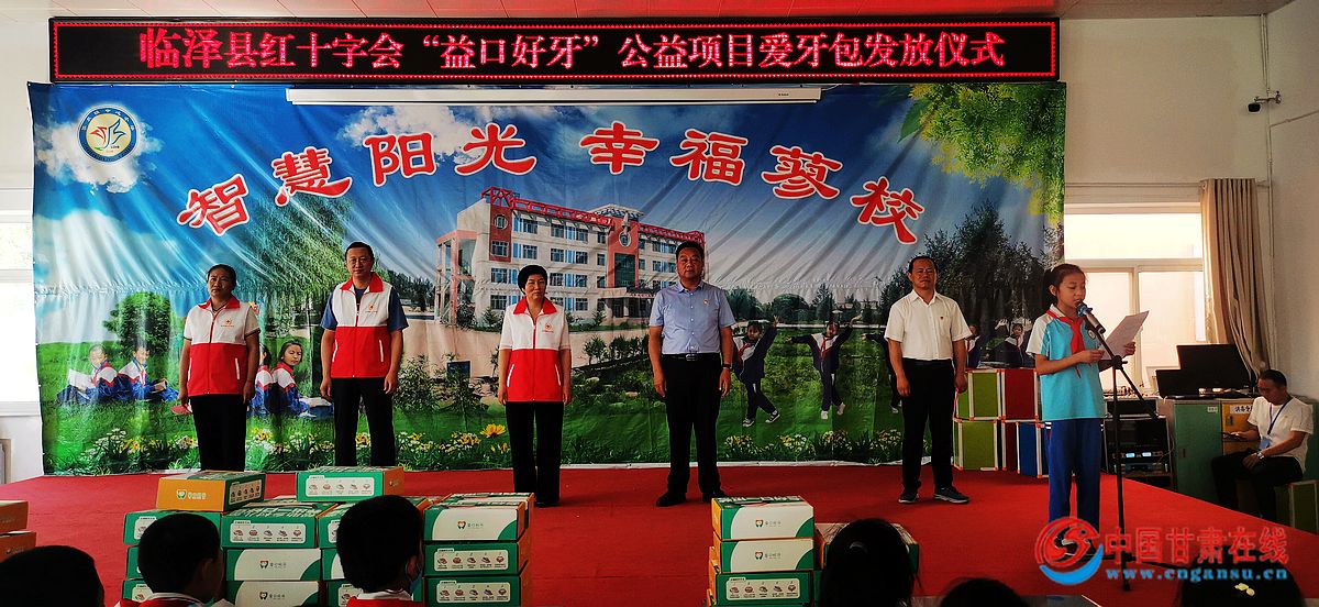 中国甘肃在线临泽讯 6月22日-23日,临泽县红十字会“益口好牙”“爱牙包”发放仪式分别在板桥镇中心小学和倪家营镇中心小学举行,两所中心小学师生共500余人参加了发放仪式。