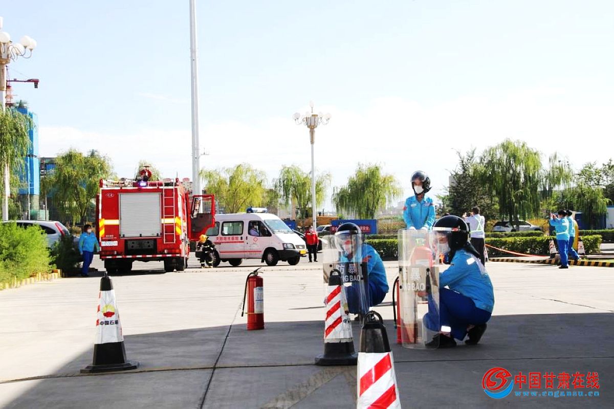 中国甘肃在线张掖讯 为切实做好“国庆”“二十大”期间防恐反恐工作,加强突发事件发生后的应急响应和处置,确保经营秩序平稳安全。9月20日,中国石油甘肃张掖销售分公司反恐预案联合演练在北三环加油站开展,张掖市公安局、张掖市消防支队甘州大队、张掖天慈阳光医院出动特警、治安警等2个警种,26名公安民警、15名消防队员、2辆特警车、5辆警务车、3辆消防车、1辆救护车配合参演。