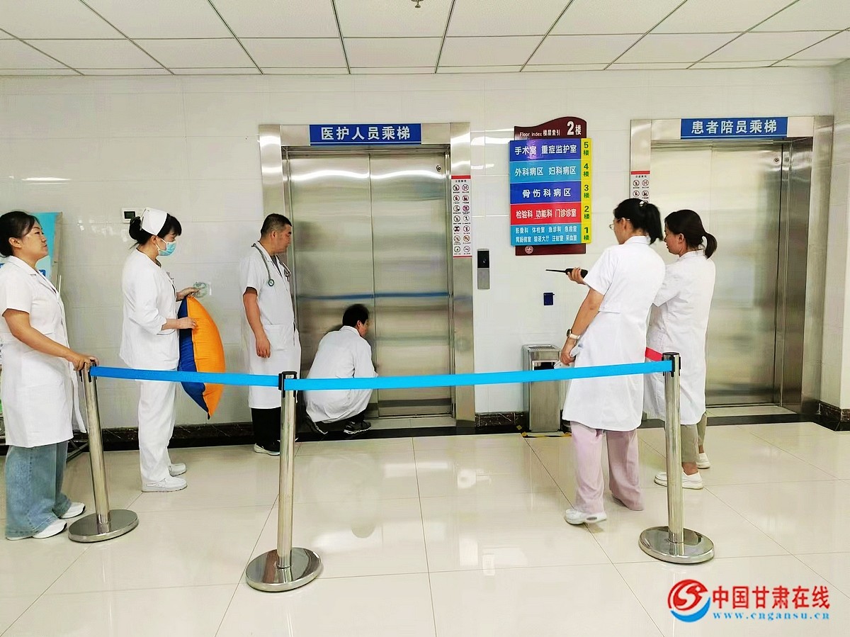 中国甘肃在线临泽讯 为保障患者和医护人员的生命财产安全,提高事故发生应急处置能力,确保在紧急情况下快速救援被困乘客,近日,临泽县中医医院联合电梯维保单位、县市场监督管理局开展电梯故障(困人)应急救援演练。