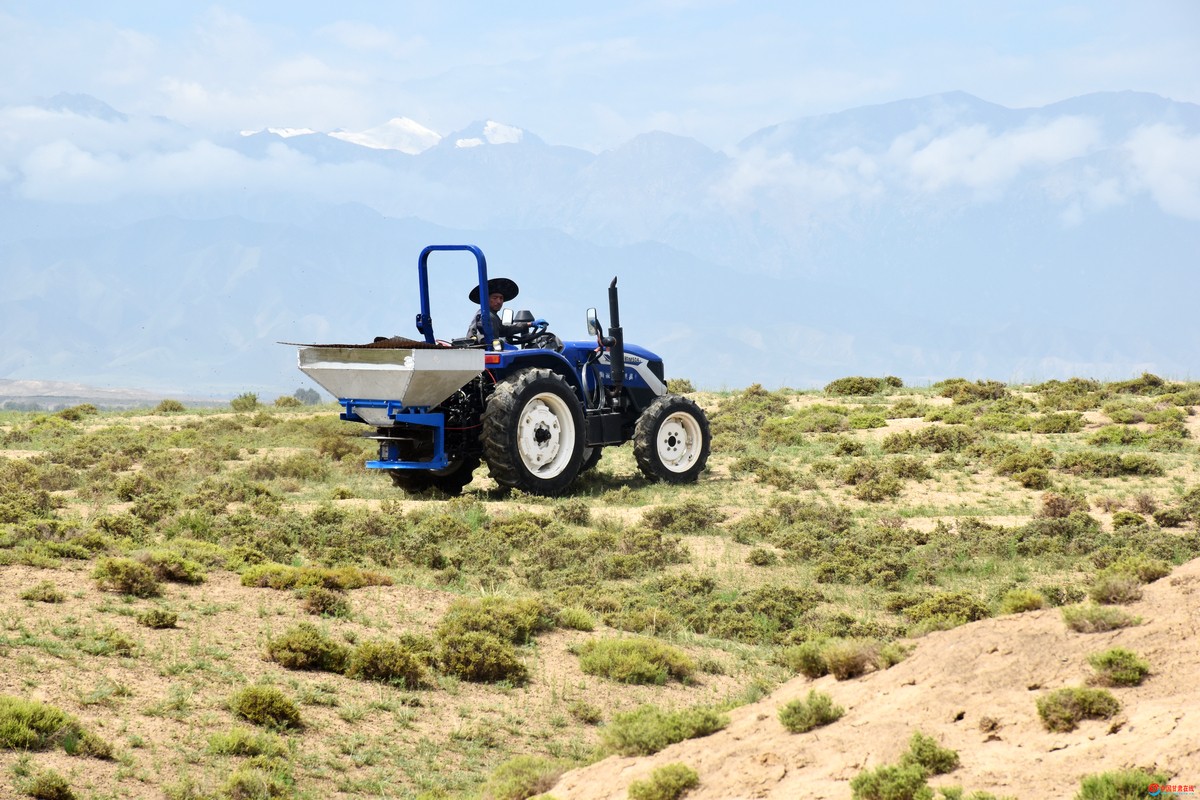 “雨季水热条件优越,有机肥撒施后能有效改良土壤、提升肥力,为草原植被恢复创造有利条件。”高台县治沙推广站站长黄步青俯身抓起一把土壤,解释草原修复的“秘诀”。
