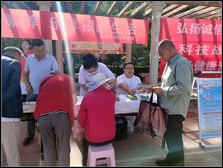 为贯彻落实全国卫生与健康大会精神,宣传老龄健康政策,普及老年健康知识,增强老年人健康意识,提高老年人健康水平,营造老龄友好社会环境,8月27日,临泽县平川镇卫生院积极开展提升健康素养,乐享银龄生活”老年健康宣传周活动。活动现场,医务人员耐心
