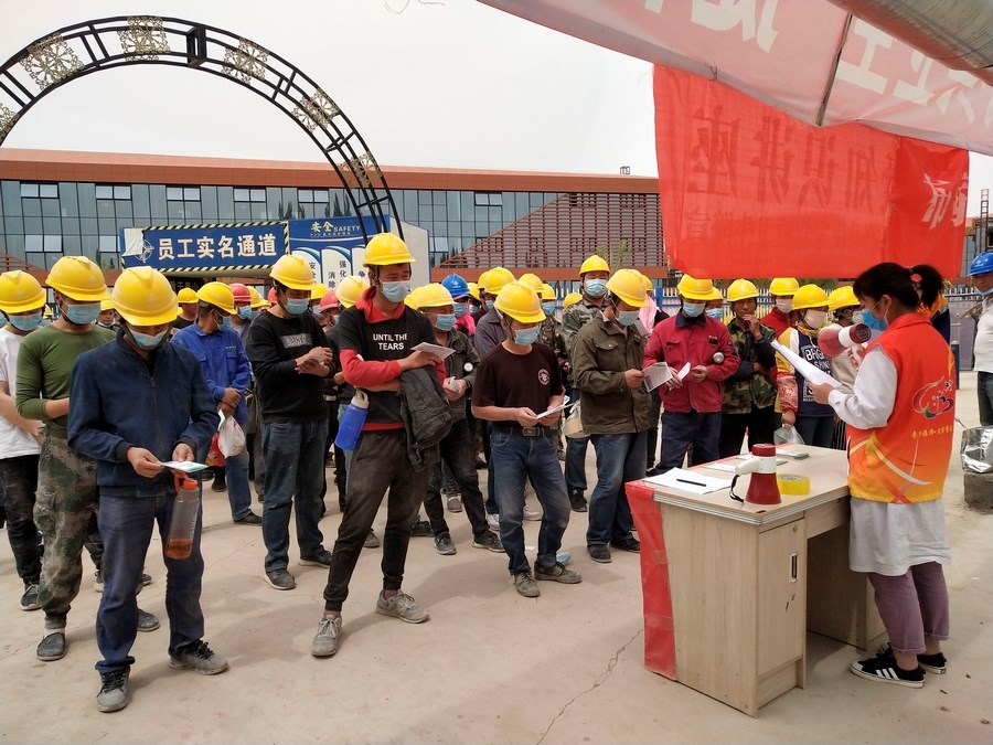 6月10日中午,倪家营镇卫生院组织志愿者深入中交四局项目部为工人开展了一场疫情防控健康知识讲座志愿服务活动。活动前,志愿者们早早的来到了工地,向工人们发放关于新冠肺炎疫情防控的宣传手册,活动现场重点讲解了疫情防控相关知识,主要讲解日常消毒、
