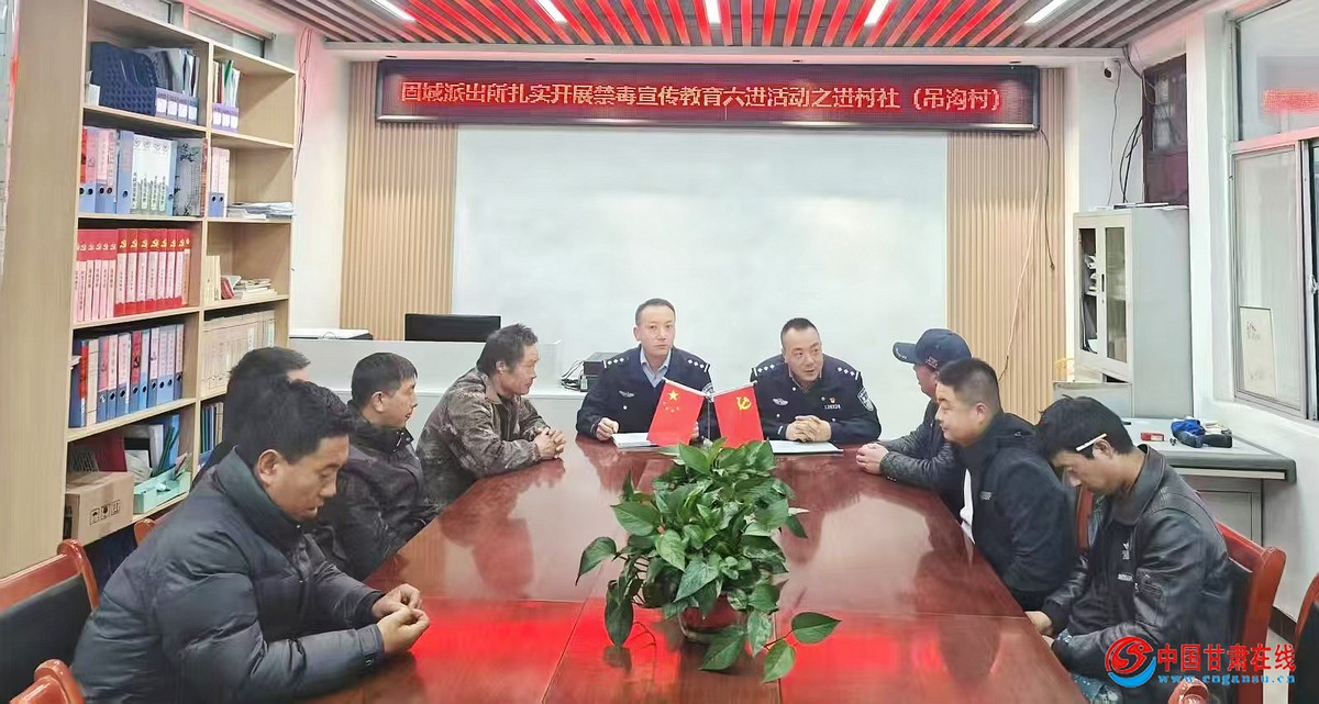 中国甘肃在线礼县讯 11月5日,礼县公安局固城派出所按照局党委要求,利用农闲时机,适时组织民警进村入户普及禁毒知识,宣讲禁毒法规,增强广大群众识毒拒毒防毒能力,进一步推动毒品预防宣传教育“六进”活动做细做实。活动中,所长刘茂盛带领民警在辖区