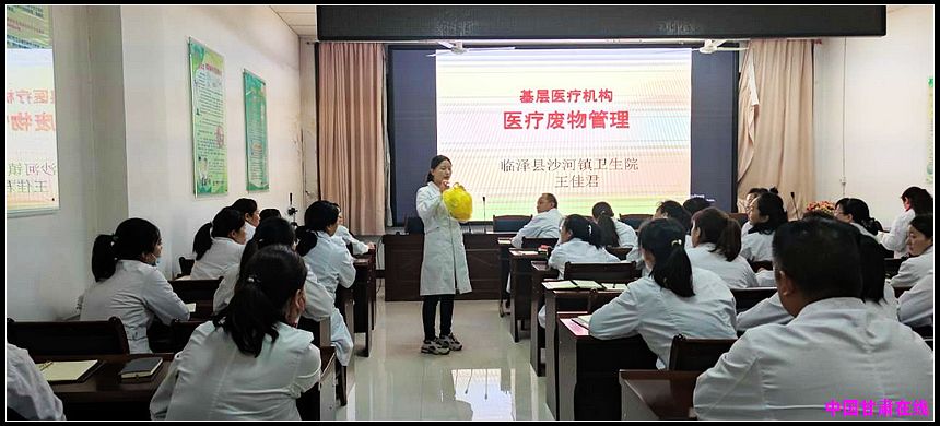 为进一步加强医疗废物的安全管理,规范医疗废物处置,提高医务人员对医疗废物危害的认知,杜绝医疗废物流失,防止疾病的传播,有效预防和控制医疗废物对人体健康和环境产生的危害,维护环境安全,临泽县沙河镇卫生院组织全院医务人员进行医疗废物管理与规范处