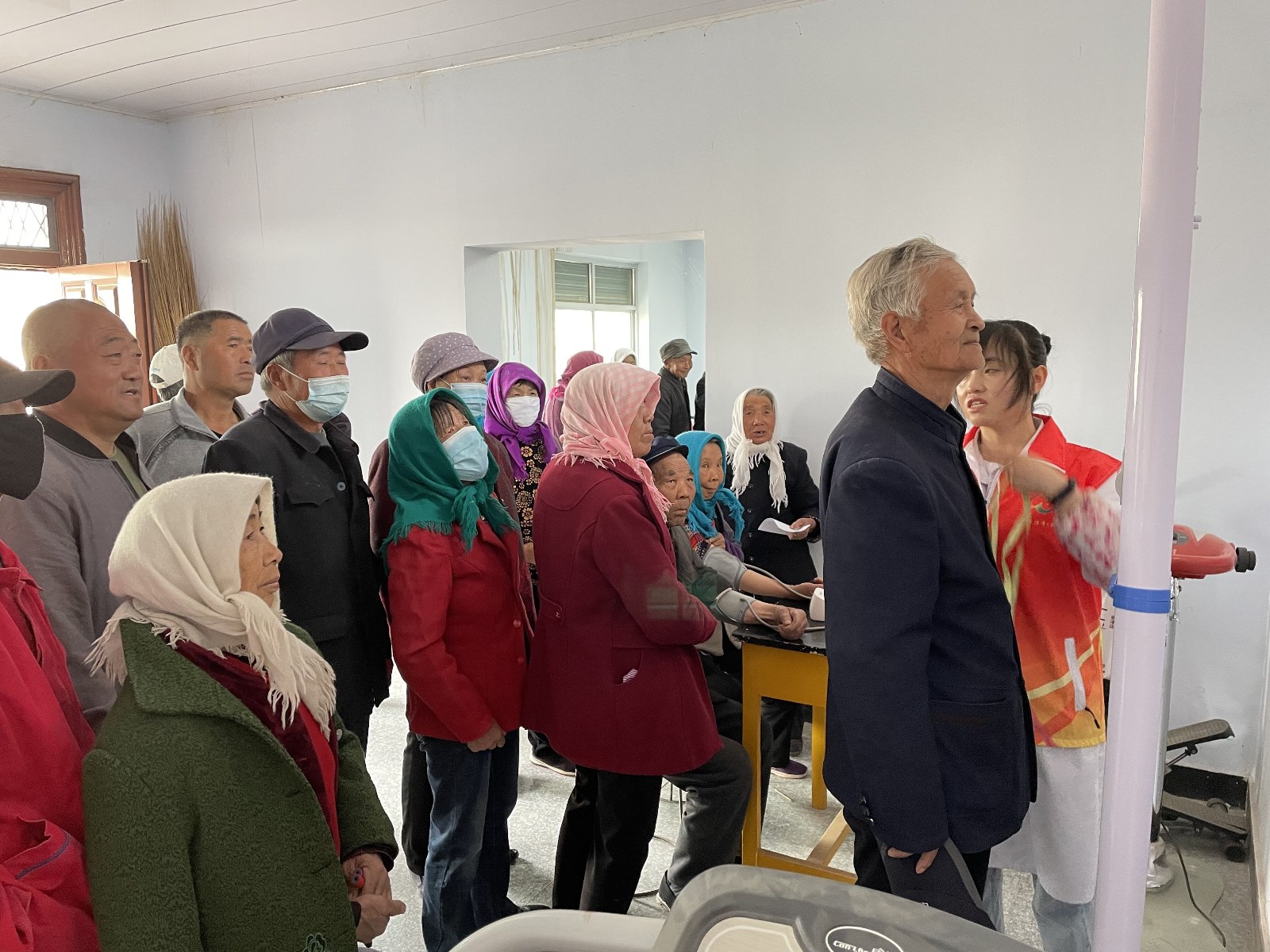 临泽县鸭暖中心卫生院把党史学习教育与提升医疗服务质量相结合,切实把学习成效转化为工作动力,积极开展"我为群众办实事"活动,用心用情为群众开展惠民义诊活动。近日,鸭暖中心卫生院组织医护人员组成义诊团队携手大鸭村卫生室开展医