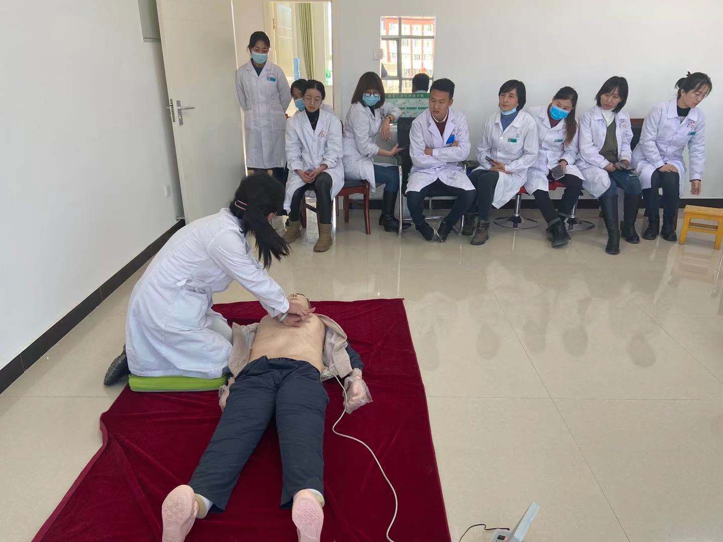 为进一步提升卫生院医务人员的急救水平,提高应急处置能力和应变能力,提高患者抢救几率,12月21日下午,临泽县倪家营镇卫生院积极组织院内职工开展心肺复苏操作培训演练。首先由卫生院副院长张玉玲为大家讲解心肺复苏的理论知识和注意事项,并利用模拟人