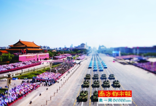 装备方队接受检阅(移轴镜头拍摄)。 新华社发