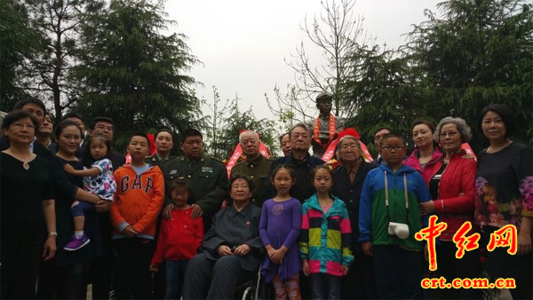 毛泽民烈士亲属在毛泽民烈士铜像前合影。(中红网红色图库)