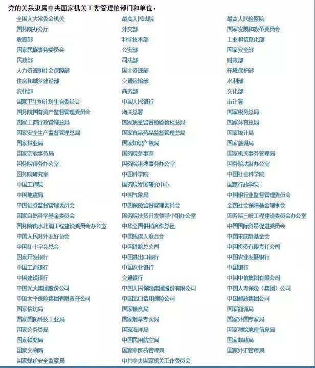 其中第一条就是“领导中央国家机关各部门机关党的纪律检查工作”,这里面的各部门参照“党的关系隶属中央国家机关工委管理的部门和单位”图表,大家自可明白。