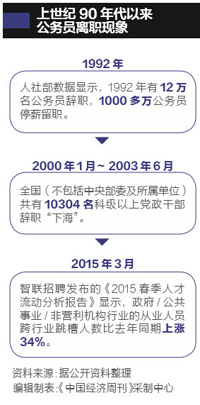 除此以外,自2013年以来,关于公务员主动离职的新闻不断曝出,让人感觉公务员离职会成为越来越普遍的一种现象。于是,有人把公务员离职潮和公务员吸引力减弱联系起来,理由是:既然体制外的人对公务员的热情都已下降,说明公务员的日子真的不好过了,公务员出现离职潮也是自然而然的事情。