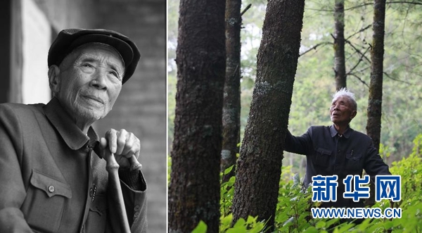 左图:杨善洲的资料照片(2009年10月摄);右图:杨善洲在大亮山林场(2009年摄)。云南省原保山地委书记杨善洲1988年退休后带领群众和林场职工,在施甸县大亮山艰苦奋斗20多年创办林场,造林5万多亩,2010年10月因病逝世。新华社发
