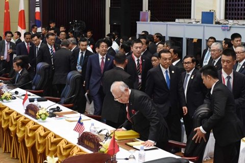 在此前一天的中国—东盟领导人会议上,中国与东盟10国领导人已经通过了《关于南海适用海上意外相遇规则联合声明》,和《应对海上紧急事态外交高官热线平台指导方针》,并同意积极推进“南海行为准则”磋商,在争议解决之前管控分歧、化解矛盾。