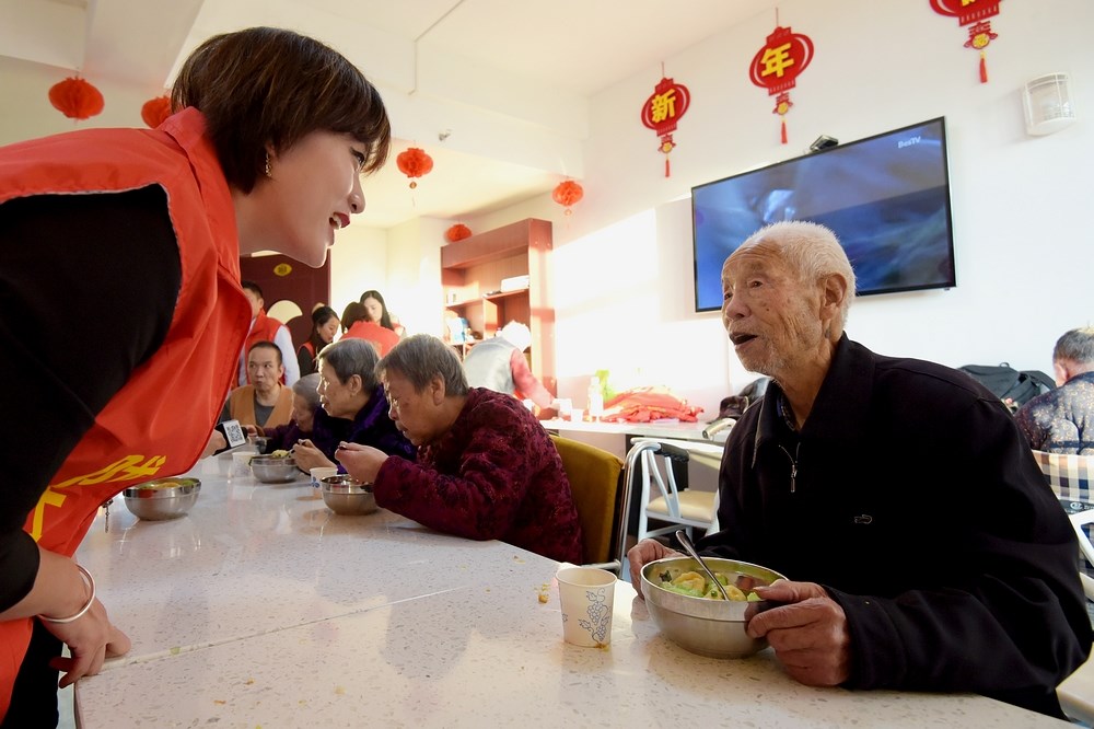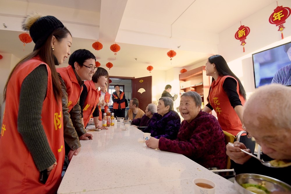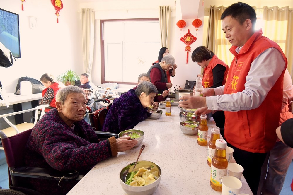 托老所老人吃着网络大V们包的饺子饺子,提前感受冬至快乐