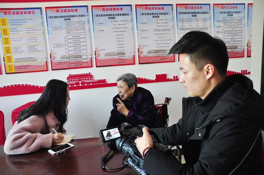 托老所老人接受甘肃电视台记者采访,讲述在敬老院的经历和温暖