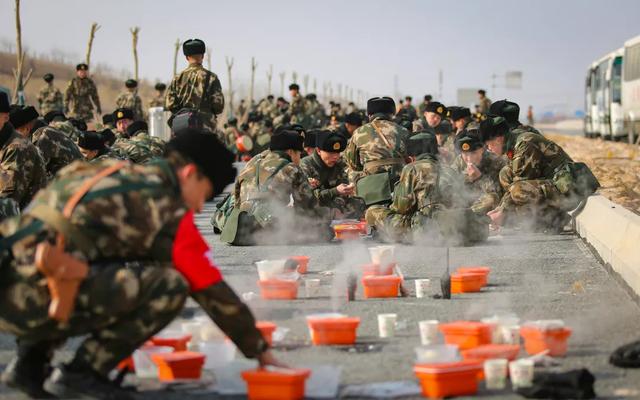 来到宿营地,保障人员端上了热气腾腾的饭菜,官兵们大快朵颐一番,又投入到紧张的训练中去……