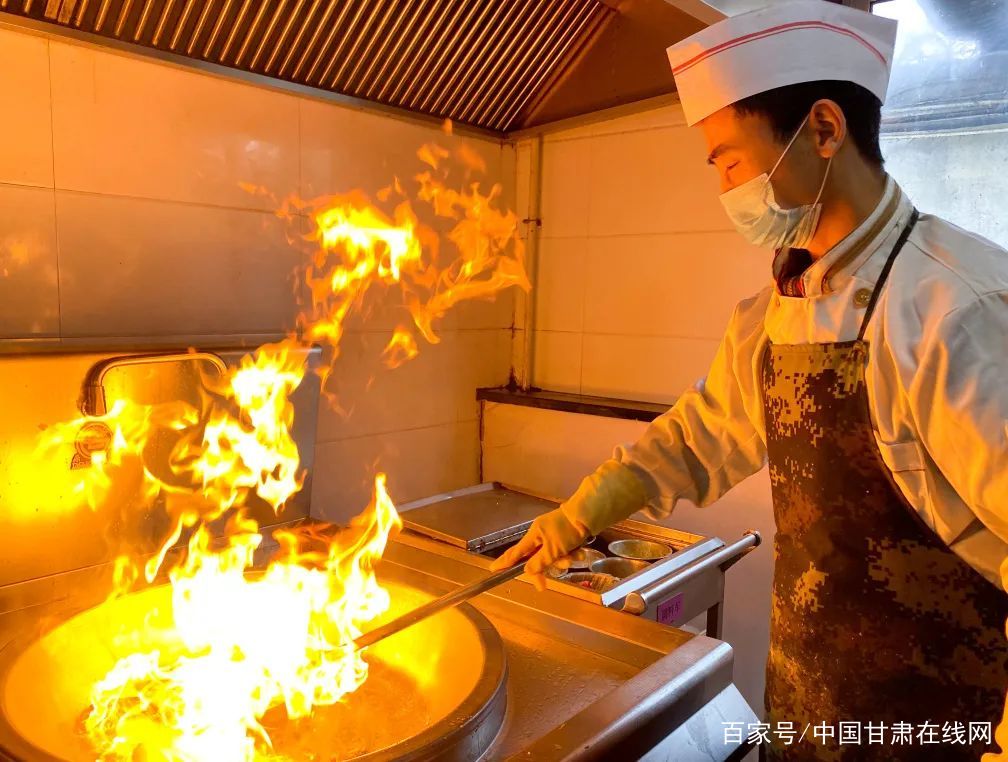来自南方的战士小李,一开始吃不惯面条,曾撂下“狠话”:“除了米饭,我不吃任何面食。”金飞得知这一消息,便发起“挑战”:小李不吃面条,不是面条不好,而是没有吃到好吃的面条。他决定,做一次“拉条子”露一手。凉水和面,揉抻顺筋,蔬菜切丁,起锅烧油……看到小李吃完一碗还不够尽兴的样子,金飞显然“挑战成功”。这一气呵成的自信背后,更多的却是他不被看好的过往。回想他10多年前刚转士官的时候,中队缺一名炊事员,金飞主动请缨,第一次掂起了大勺。没有任何烹饪基础的他,就是凭着一股钻研劲,在战友的抱怨和不看好中不断摸索。谁想,这大勺一掂便是十年……