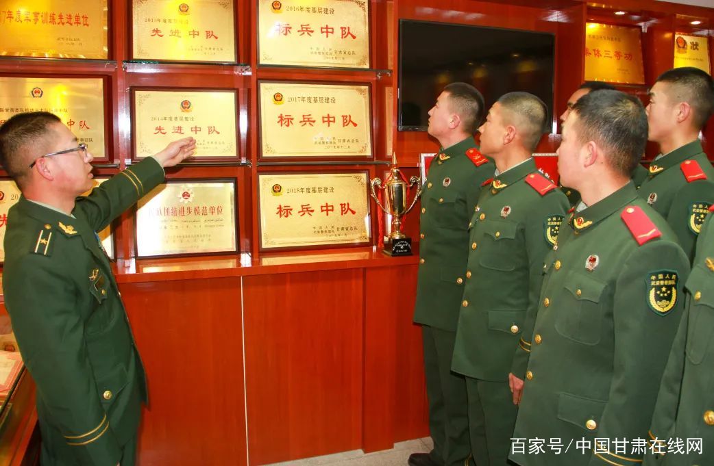 “孟德禄、黄德昌是中队老一辈的英雄典型,他们为了革命事业不惜抛头颅、洒热血,将青春热血挥洒在这片土地上……”指导员刘松正在为官兵讲述中队英雄故事。每逢新兵下队,都要组织学习先辈们的战斗事迹,在赓续血脉中实现向忠诚卫士的转变。一面面金光闪闪的奖牌填满了整个荣誉室,大家置身其中,有感动有自豪,更激发出无穷的前进动力。