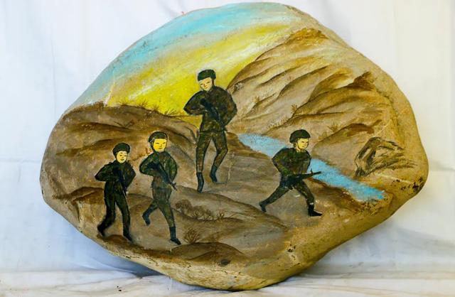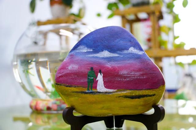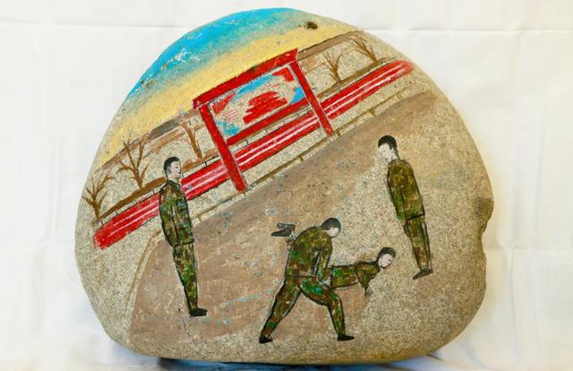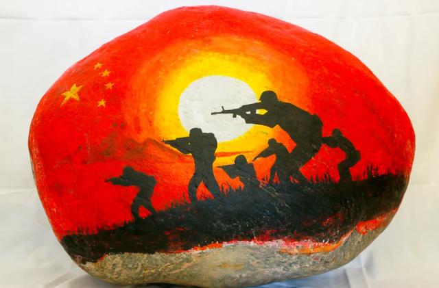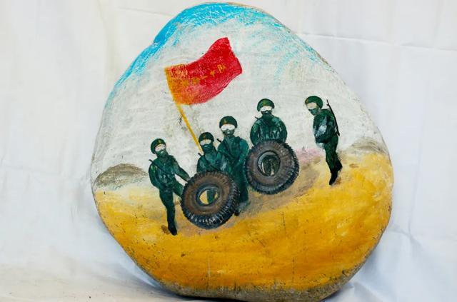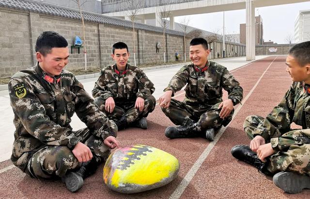 在中队营区,一组手绘石头画火了,官兵纷纷驻足观看,还一一拍下来,发到微信朋友圈,亲朋好友纷纷点赞叫好。