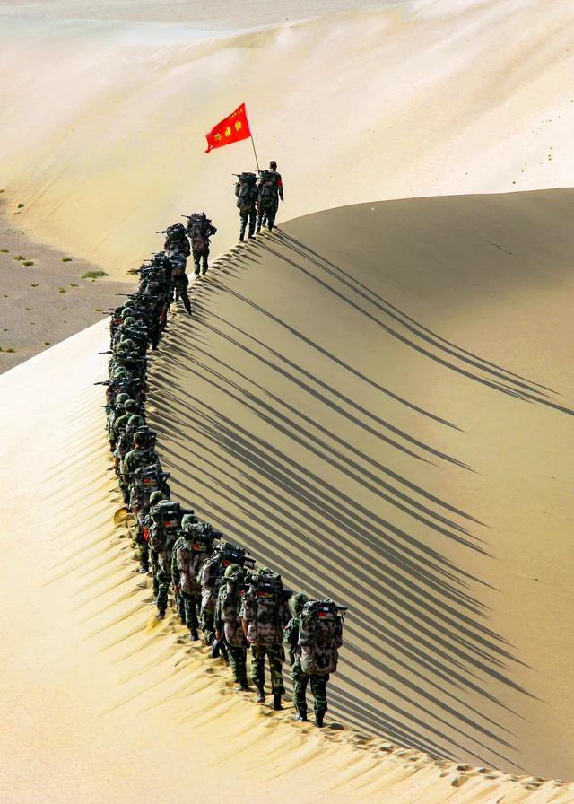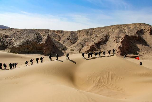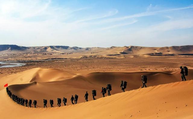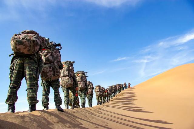 官兵在沙漠中行军