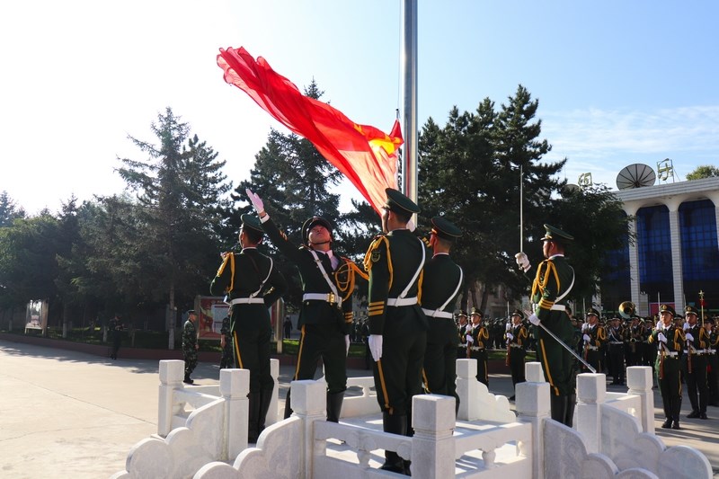 在他们中有这样一句话广为流传:“ 擎起国旗,一种自豪感油然而生,当它冉冉升起时,随之腾飞的还有我们青春美好的年华和澎湃汹涌的爱国情怀。”质朴的话语伴着鲜艳的国旗一次次飘扬在天空中,寄托了官兵们对祖国忠贞不渝、无限热爱的真情实感,时刻鞭策着他们不忘初心,砥砺前行。