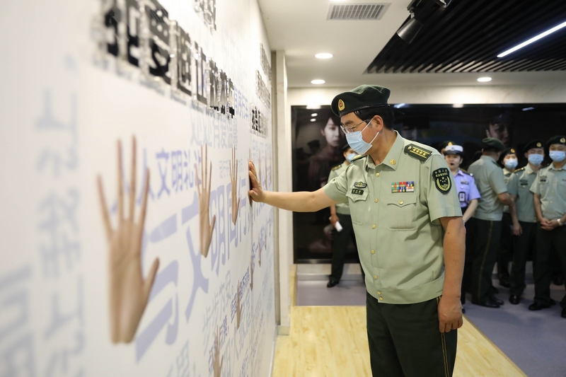 最后,颉双德政委带领全体参观人员,逐批在手印墙上按下手印,他们郑重承诺:一定严格遵守交通规则,宁慢一分,不争一秒,用实际行动践行“我的安全我负责、他人安全我有责、单位安全我尽责”铮铮誓言。