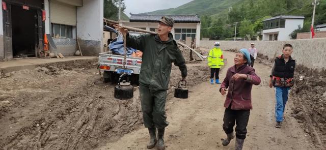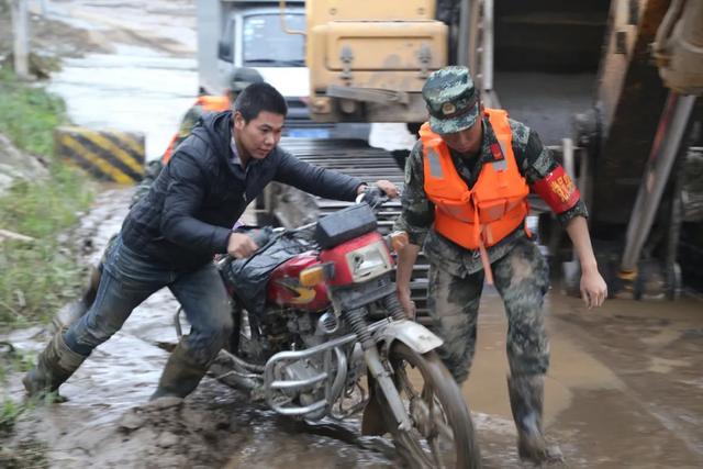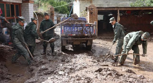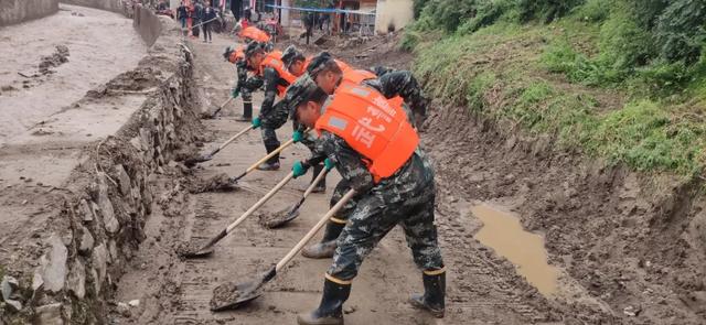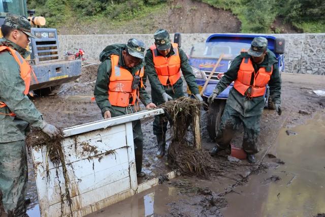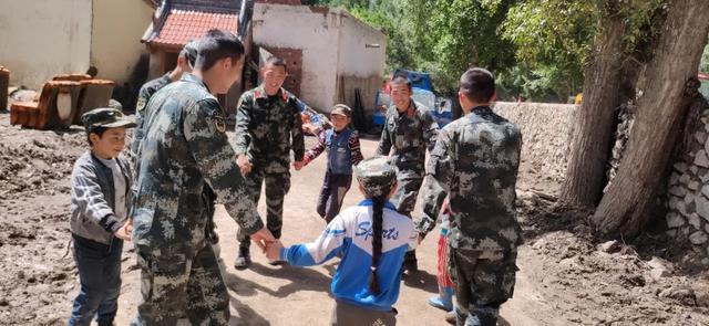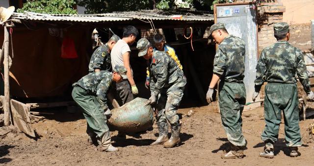 抗洪抢险,军民风雨同舟;灾后重建,军地齐心协力。面对房屋清淤、物资转运、加固河堤等难题,支队官兵随即打响灾后家园重建“保卫战”,帮助受灾群众及时恢复生活生活秩序。在受灾最严重的义仁沟村,大型机械无法到达,官兵划分小组,由党员干部带头,深入灾民家中,利用铁锹、洋镐、救援绳等器材,通过手刨、肩扛等方式,帮助村民清理冲积在院内外的杂物。官兵们的双脚长时间浸泡在20多厘米深的淤泥中,仍然挥汗如雨比着干、抢着干。