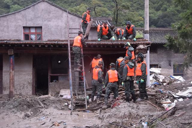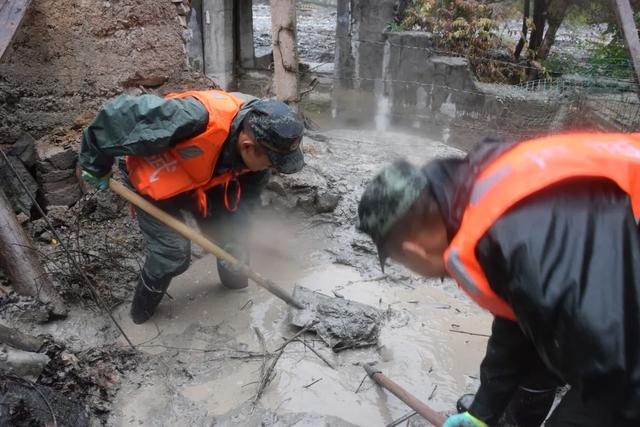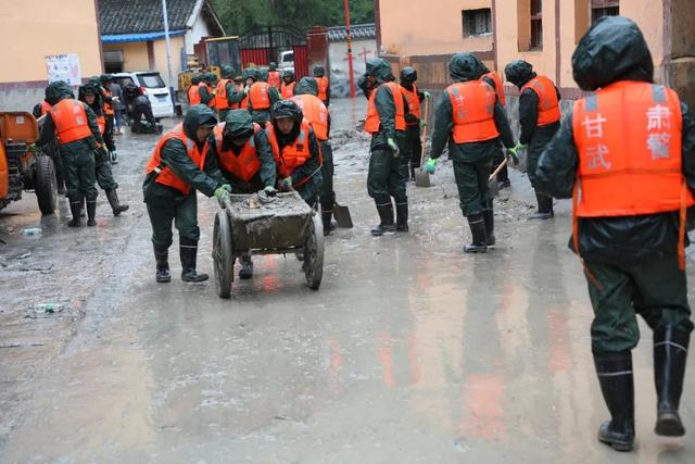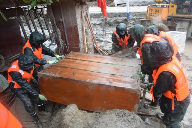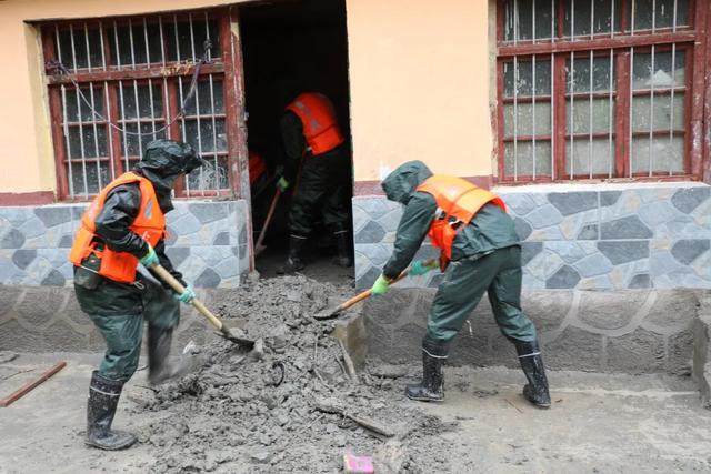 任务现场,百余名武警战士多点突击,密切分工合作,有的挥起手中的铁锹、洋镐清理淤泥,有的利用小推车搬运洪水冲来的垃圾杂物,有的上房下沟排除险情,有的用双手开挖导渗沟,挖掘、搬运被埋压的财物……