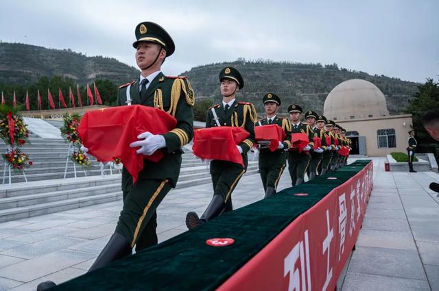 上午10时,仪式在雄壮的《中华人民共和国国歌》中开始,激昂的旋律响彻陵园,再次将人们的思绪带回中华儿女同仇敌忾、共赴国难的烽火岁月,重温中华民族不屈不挠、英勇抗战的伟大精神。国歌唱毕,礼兵迈着庄重沉稳的步伐,缓缓护送十名烈士骨灰前往烈士墓区安葬。