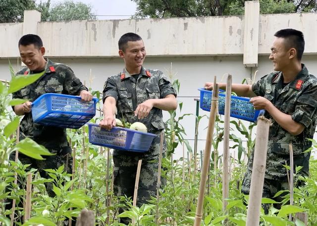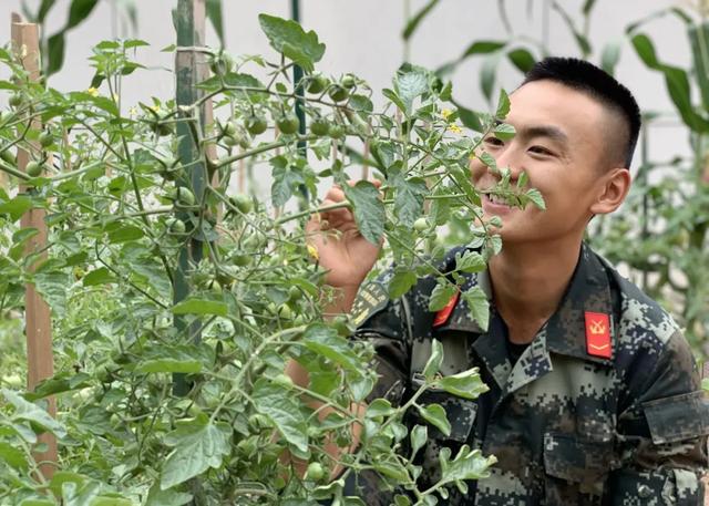 入秋以来,硕果盈枝,官兵们又迎来了一个丰收季。菜地里一个个小青瓜慢慢长大,一个个灯笼似的红番茄挂满枝头,大青菜枝肥叶厚,形成“菜满园、瓜果香”的喜人局面。蔬菜种植全程不打农药,全天然无公害的绿色有机蔬菜,在官兵们的餐盘里花样翻新,让大家享受味蕾上的鲜美、舌尖上的安全。