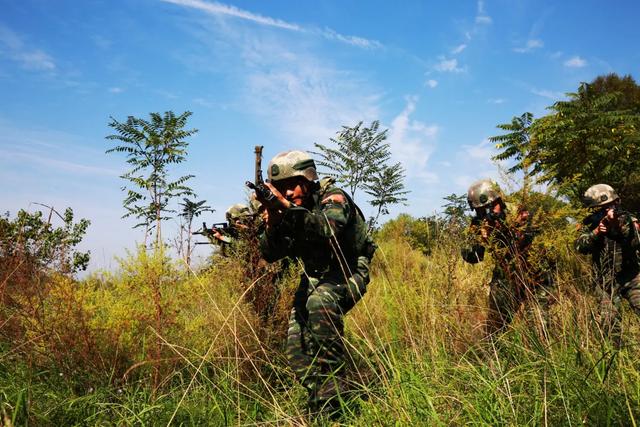 “战斗警报,遭遇敌袭!”部队还未到达集结地域,蓝军第一轮进攻已经打响,特战队员闻令而动、迅速反击。紧接着,武装追逃、山林地搜剿、反劫持等处置情况,在计划导调和随机导调下相继展开,应接不暇的突发情况不断挑战着官兵的心理和生理极限。