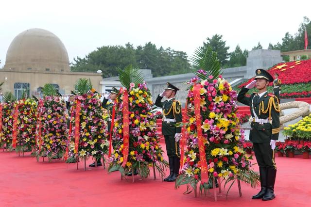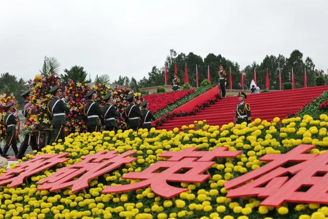 上午10时整,公祭仪式在雄壮的国歌声中拉开帷幕,全场齐声高唱国歌,雄壮的国歌声在烈士陵园上空久久回荡。18名礼兵抬起花篮,迈着庄重的步伐,缓步走向烈士英雄纪念碑,将花篮摆放到纪念碑基座上。在场全体人员肃立默哀,告慰先烈英魂,缅怀革命烈士。默哀结束后,军地领导在花篮前驻足凝视,仔细整理花篮缎带,缓步环绕烈士墓瞻仰。随后,官兵依次向烈士墓献花敬礼,寄托浓浓哀思之情。
