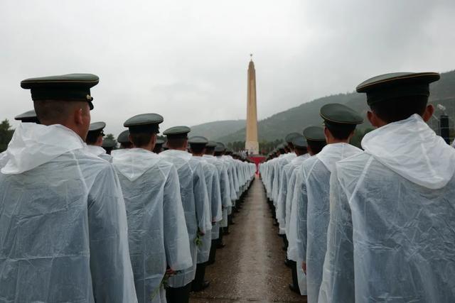 烈士陵园掩映在苍松翠柏间,官兵们拾阶而上,庄严的烈士纪念碑屹立在园区中央,“缅怀先烈、致敬英雄”8个大字显得格外醒目,提醒大家要牢记革命胜利是先辈用生命和鲜血换来的。