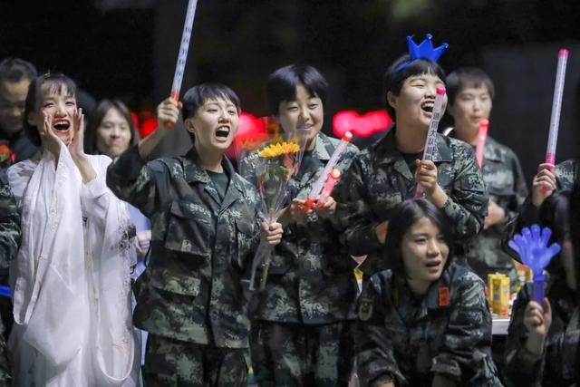 新时代,新征程。表演《训犬》、小品《加油》、歌曲《光辉岁月》《南山南》、舞蹈《世上梗最多的歌》《What makes you beautiful》《丽人行》,表达官兵们在练兵备战、后勤保障等战位上,抒写忠诚、奉献青春的无悔誓言,用不同的艺术形式,把军人的战斗之美、阳刚之气展现得淋漓尽致,深深打动台下观众。