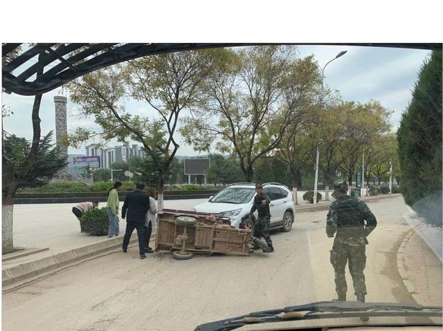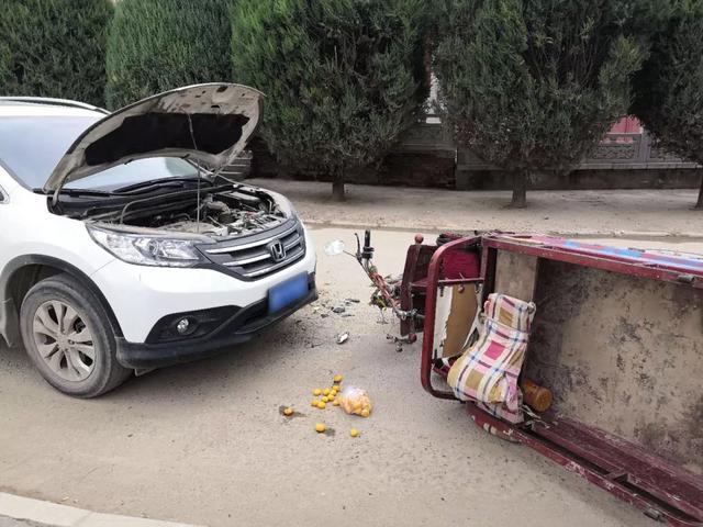 一辆电动三轮车与迎面驶来的小轿车相撞