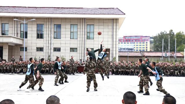 随着清脆的哨声吹响,篮球比赛正式拉开帷幕,全体参赛队员斗志昂扬、激情四射,场下观众敲锣打鼓、呐喊助威,裁判公正执裁,全体官兵沉浸在一片欢腾的海洋中。
