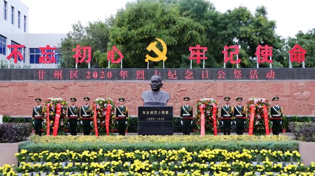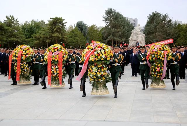 在中国工农红军西路军烈士纪念碑前,支队官兵军容严整,庄严肃立,为战争中牺牲的革命先烈献上花圈,沉痛默哀,寄托对革命先辈的无限哀思。