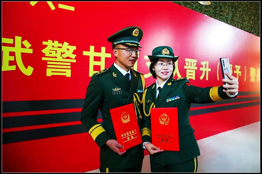 接过命令状自豪万分,佩戴新警衔无上光荣。为进一步激励和增强广大干部的光荣感、使命感和责任感。10月23日,武警甘肃总队甘南支队举行晋升(授予)警衔仪式,与官兵一起分享见证这一崇高荣耀的,还有军人家属。