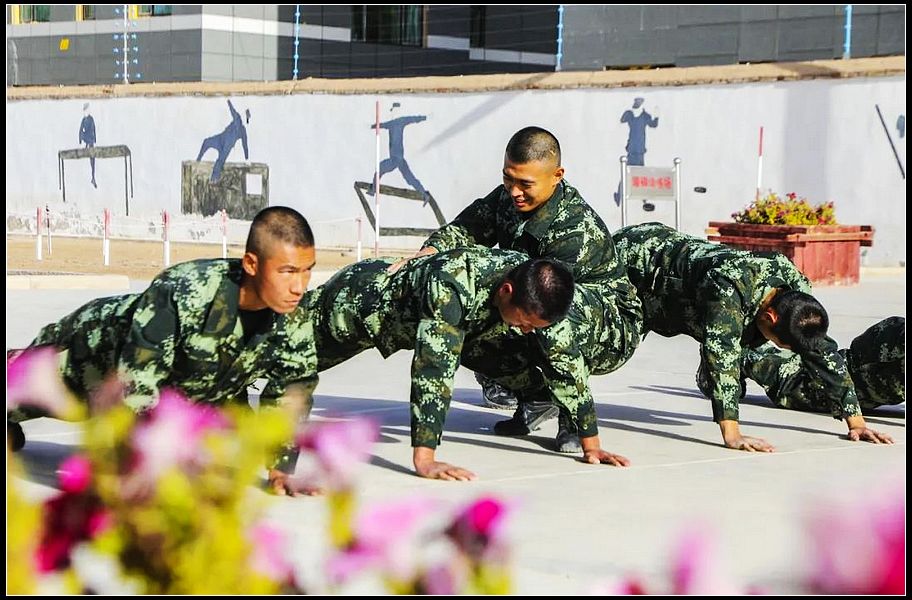 “俯卧撑连续向下身体成一条直线,肩部低于肘部,身体不能贴地……”近日,笔者在武警甘肃总队新训三大队训练场上看到,组织体能训练的教员竟是一名新兵。