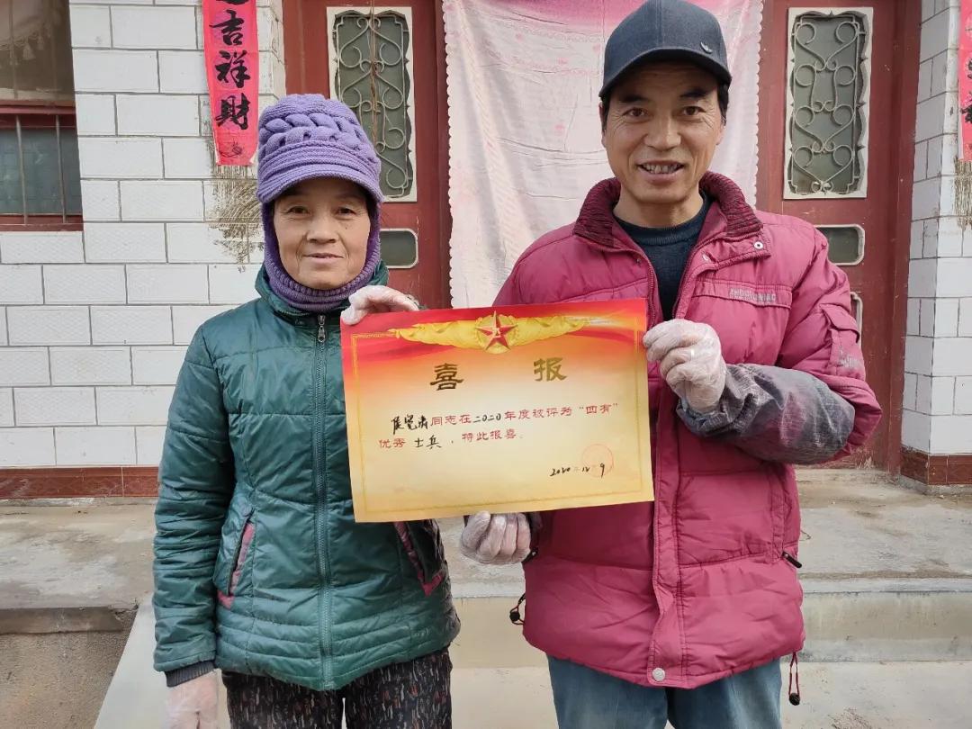 “看,这是我儿子的喜报!”接过儿子的喜报,战士王效辉的母亲看了又看、摸了又摸,激动之情溢于言表,家人拿起手机与喜报合影。合影完毕,大家在视频中对王效辉竖起大拇指:“效辉,好样的!”路过的乡亲围了一圈又一圈,无不纷纷夸赞。