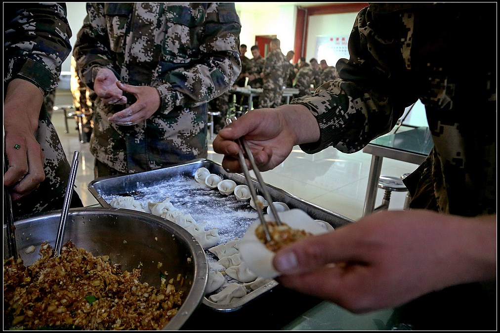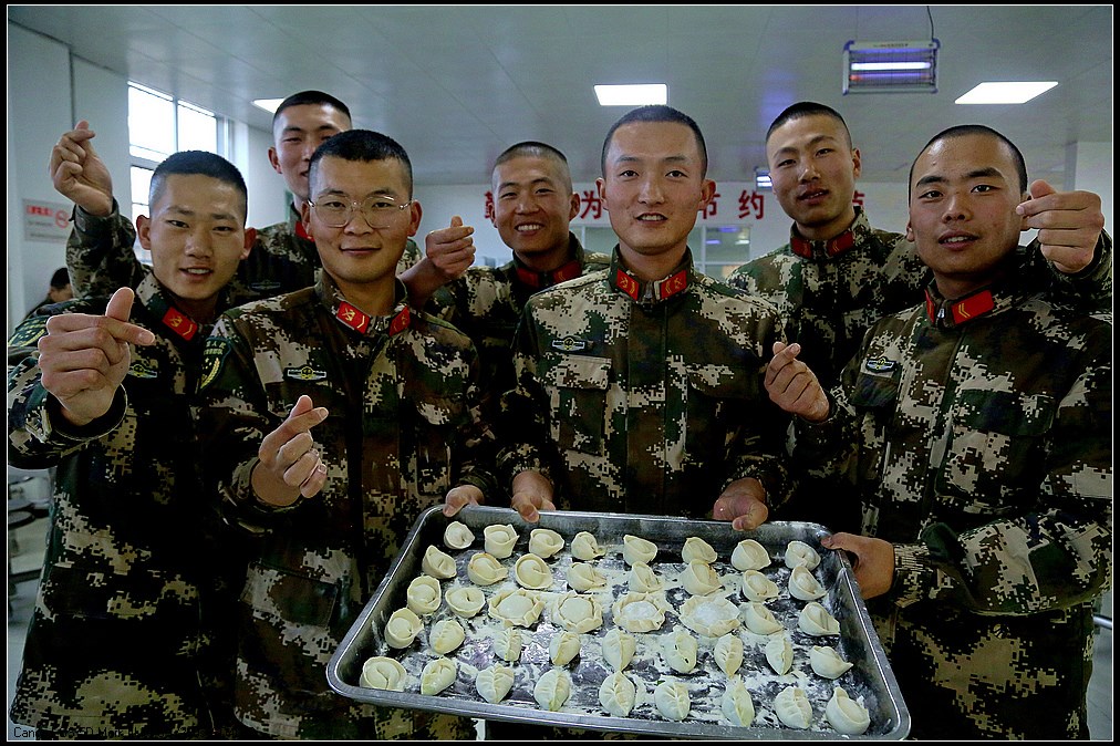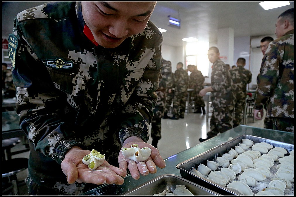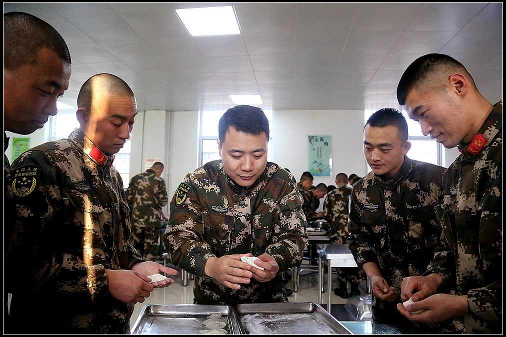 中国甘肃在线讯(赵小春报道)“数九寒天”话冬至,饺香情浓暖军营。近日,武警甘肃总队白银支队举行“冬寒冬至、情暖心暖”手工饺创意活动,大家齐聚饭堂绞肉馅、和面粉、揉面团、擀面皮、捏形状,欢声笑语充满整个营区。不一会儿,大家的手工创意饺纷纷出炉,有庆祝嫦娥五号回归的“玉兔”饺,有战友情深的“四海”饺,有搞怪喜剧的“飞碟”饺……一抹抹温暖被官兵包进饺子里,喜迎冬至到来!